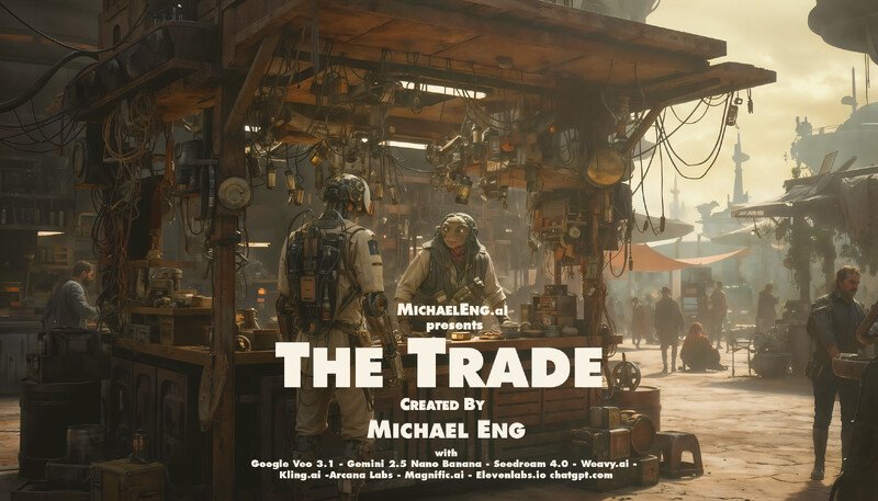 Eng's restraint is the film's superpower: instead of explaining everything, he trusts the visuals and the quiet tension of the marketplace encounter to do the heavy lifting. As Eng himself puts it: "I enjoy spectacle as much as anyone, but with AI tools the real challenge is earning emotional investment through restraint and compact narrative. It's harder—and therefore much more interesting to me." That philosophy is evident in every frame. The result is sci-fi that feels tactile and immediate, a glimpse of post-human survival that somehow makes a robot-alien transaction feel deeply relatable. It's the kind of storytelling that proves you don't need blockbuster budgets to explore big ideas—just a strong concept, vivid world-building, and the discipline to let it breathe.
